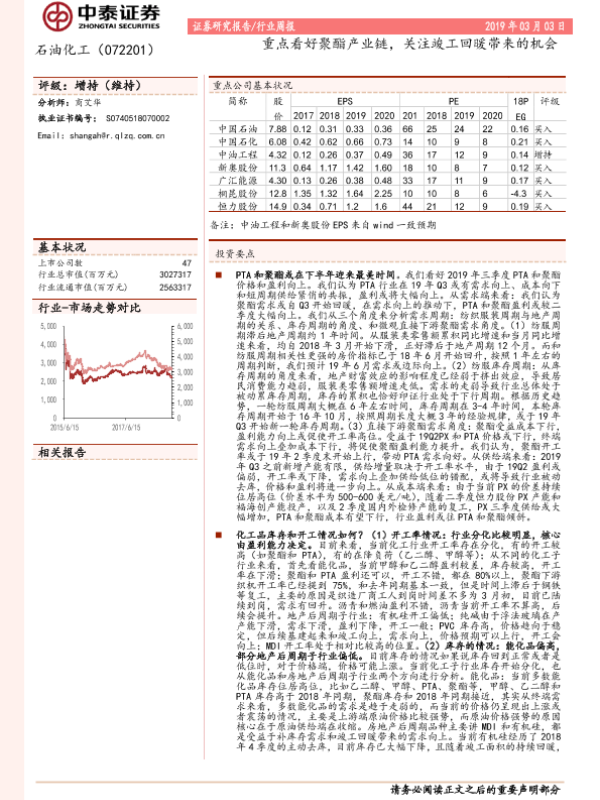 【中泰证券】【20190303】20190303-中泰证券-石油化工行业周报:重点看好聚酯产业链,关注竣工回暖带来的机会-17页