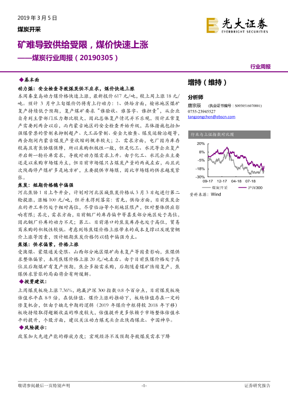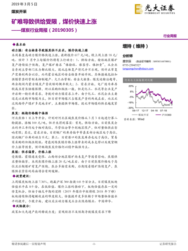 【光大证券】【20190305】20190305-光大证券-煤炭行业周报:矿难导致供给受限,煤价快速上涨-11页