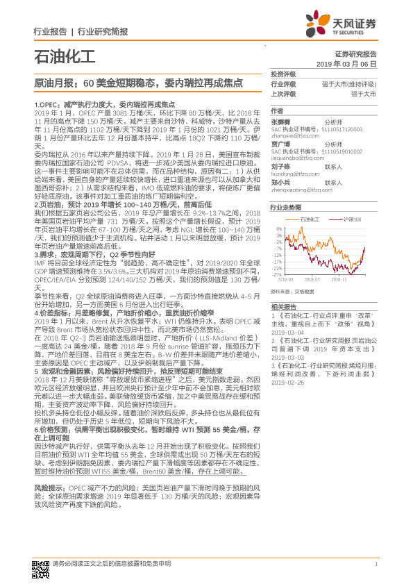 【天风证券】【20190306】原油月报:60美金短期稳态,委内瑞拉再成焦点-8页
