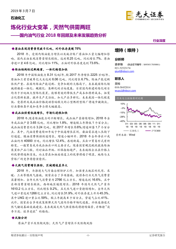 【光大证券】【20190307】国内油气行业2018年回顾及未来发展趋势分析:炼化行业大变革,天然气供需两旺-24页