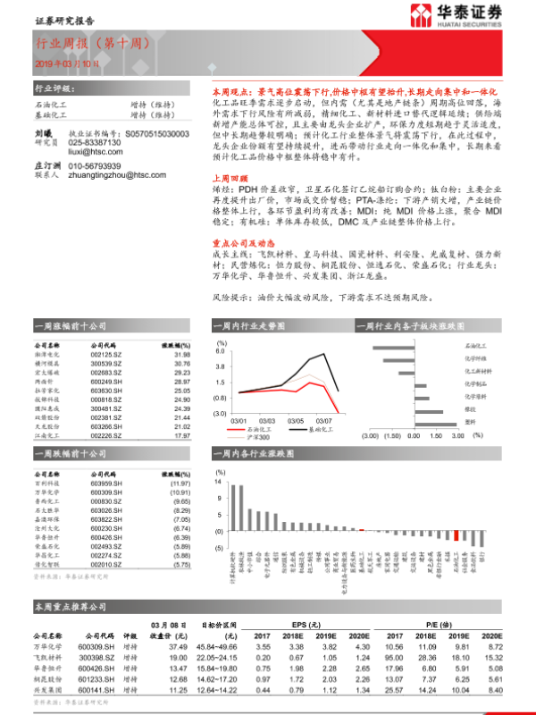 【华泰证券】【20190310】20190310-华泰证券-石油化工行业周报(第十周)-14页