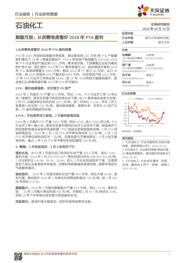 【天风证券】【20190315】聚酯月报:从供需角度看好2019年PTA盈利-10页