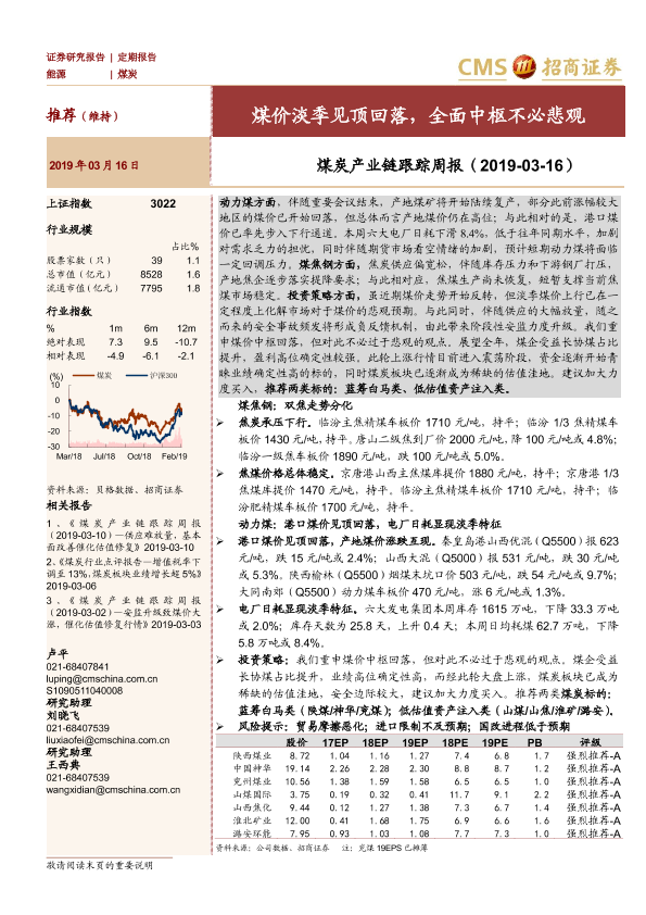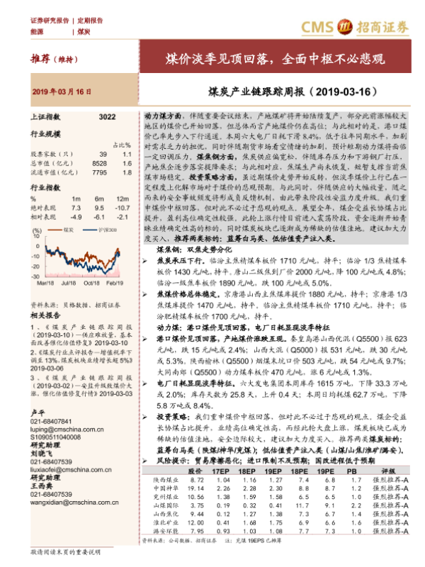 【海通证券】【20190316】20190316-招商证券-煤炭产业链跟踪周报:煤价淡季见顶回落,全面中枢不必悲观-20页