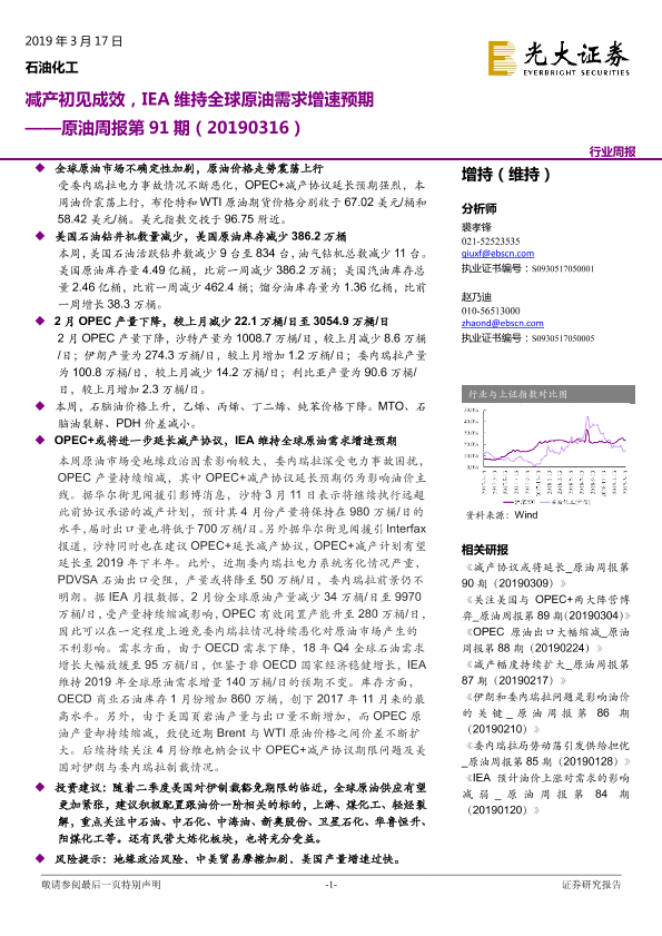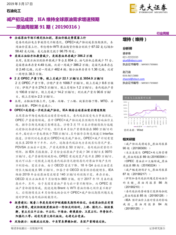 【光大证券】【20190317】原油周报第91期:减产初见成效,IEA维持全球原油需求增速预期-12页