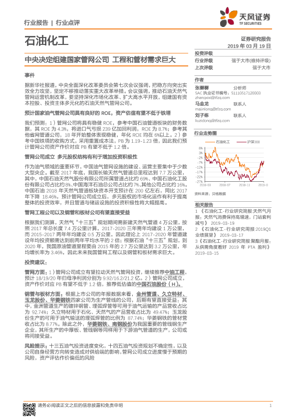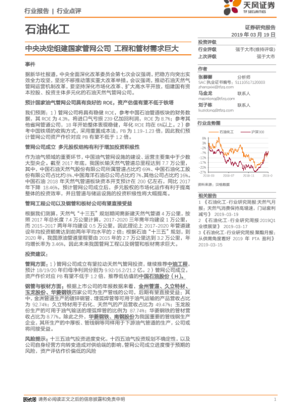 【天风证券】【20190319】石油化工行业点评:中央决定组建国家管网公司 工程和管材需求巨大-2页