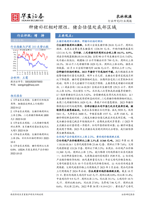【华安证券】【20221022】农林牧渔行业周报:种猪补栏相对理性,猪企估值处底部区域-39页