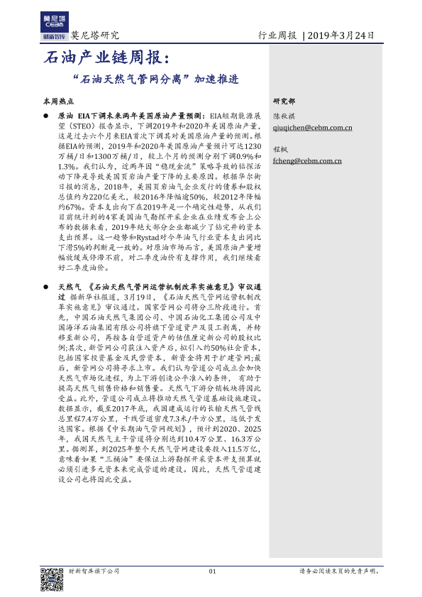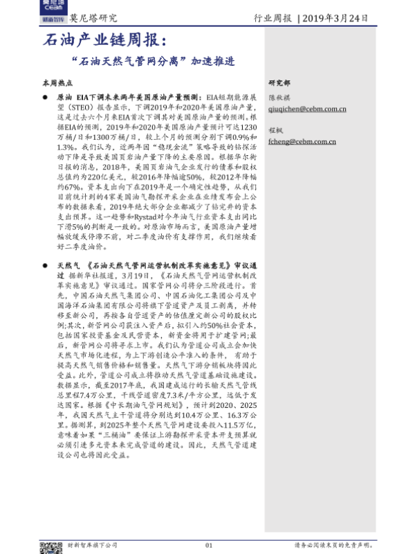 【莫尼塔研究】【20190324】石油产业链周报:“石油天然气管网分离”加速推进-11页