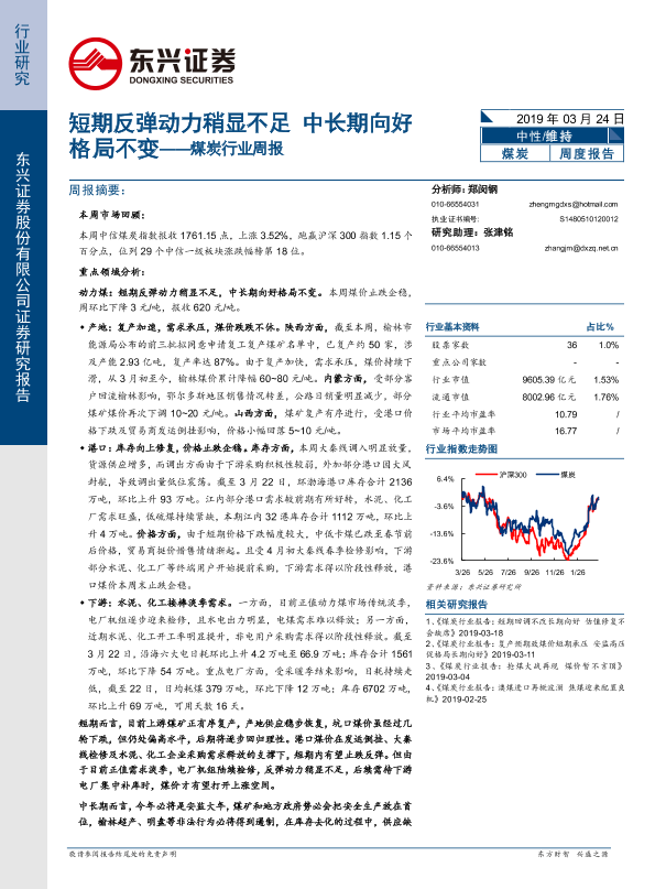 【东兴证券】【20190324】20190324-东兴证券-煤炭行业周报:短期反弹动力稍显不足 中长期向好格局不变-18页