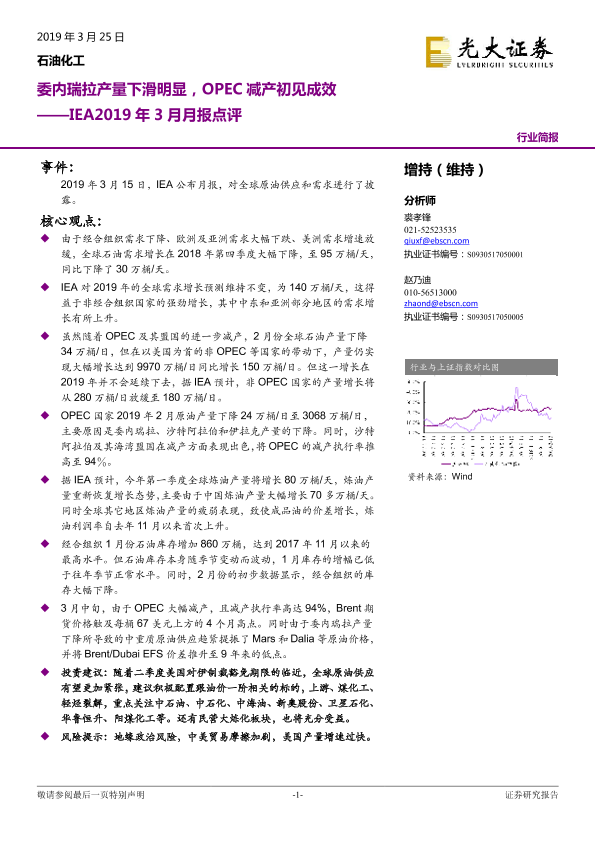 【光大证券】【20190325】IEA2019年3月月报点评:委内瑞拉产量下滑明显,OPEC减产初见成效-4页
