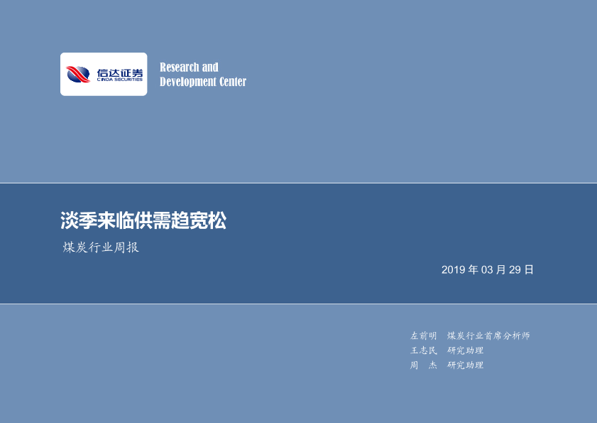 【信达证券】【20190329】20190329-信达证券-煤炭行业周报:淡季来临供需趋宽松-25页