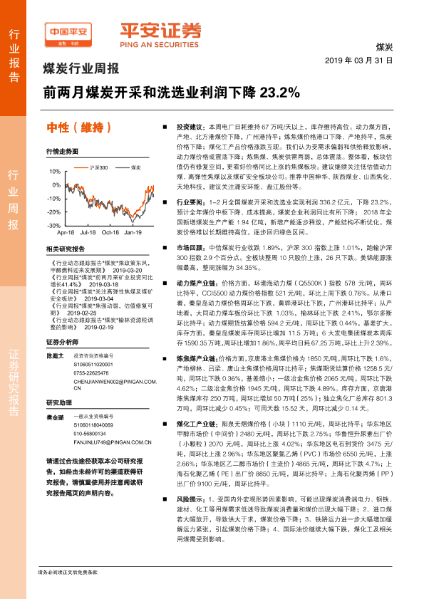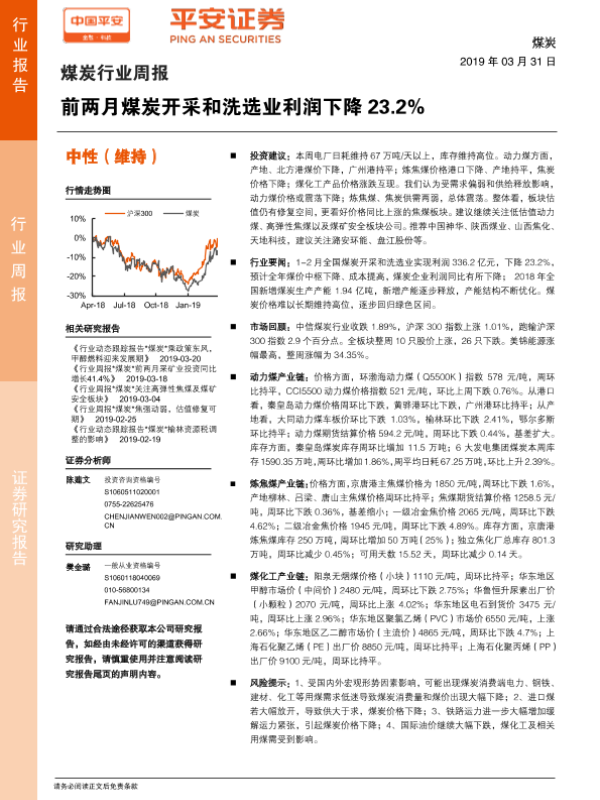 【平安证券】【20190331】煤炭行业周报:前两月煤炭开采和洗选业利润下降23.2%-5页
