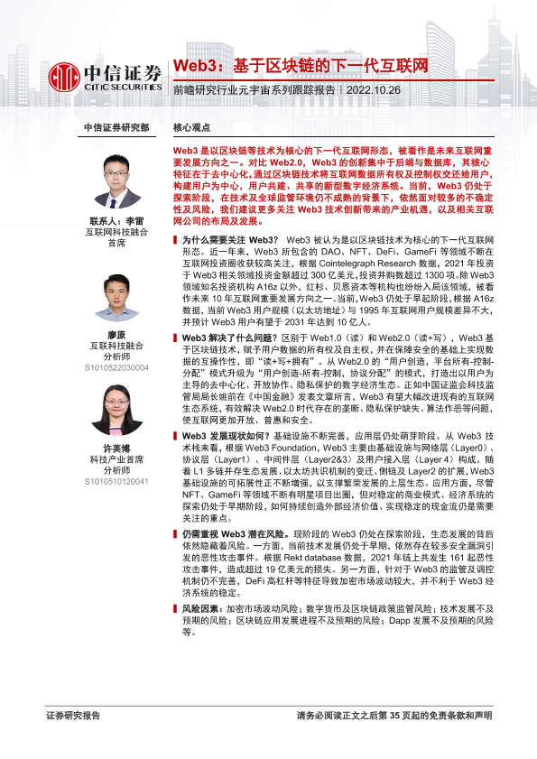 【中信证券】【20221026】前瞻研究行业元宇宙系列跟踪报告:Web3,基于区块链的下一代互联网-36页