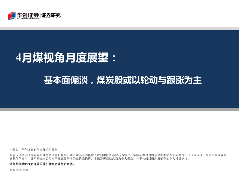 【华创证券】【20190401】4月煤视角月度展望:基本面偏淡,煤炭股或以轮动与跟涨为主-15页