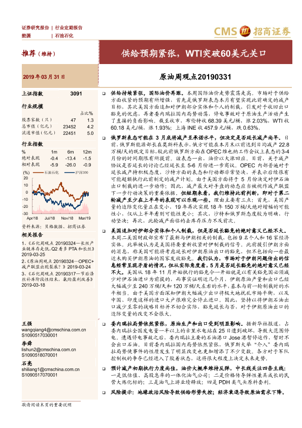 【海通证券】【20190331】原油周观点:供给预期紧张,WTI突破60美元关口-15页