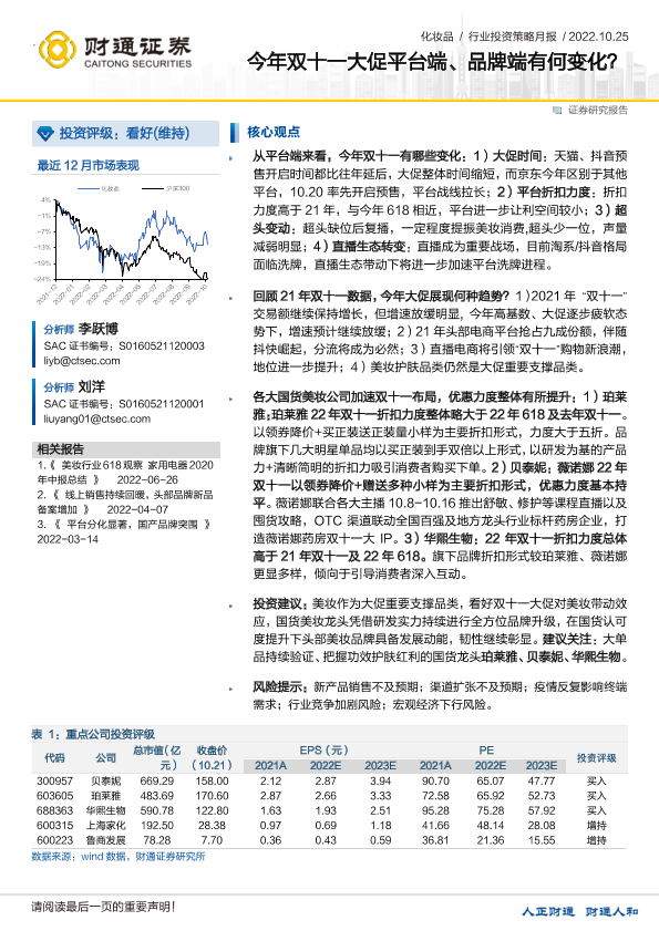 【财通证券】【20221025】化妆品行业:今年双十一大促平台端、品牌端有何变化?-26页
