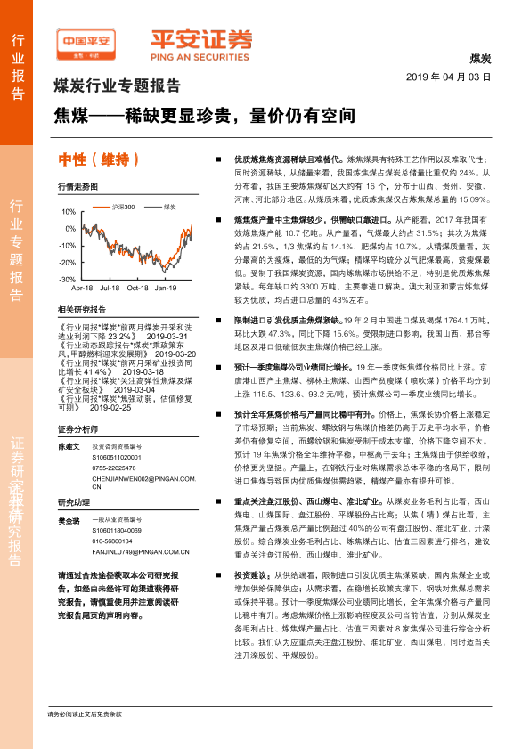 【平安证券】【20190403】20190403-平安证券-煤炭行业专题报告:焦煤——稀缺更显珍贵,量价仍有空间-19页
