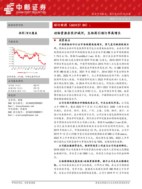【中邮证券】【20221026】动物资源夯实护城河,生物药引领订单高增长-41页