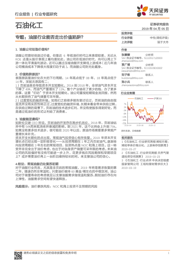 【天风证券】【20190405】石油化工专题:油服行业能否走出价值陷阱?-7页