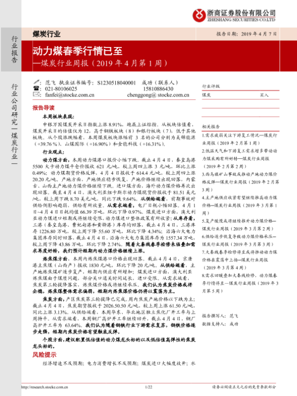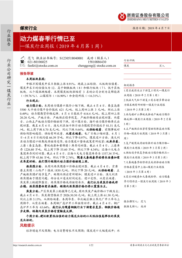 【浙商证券】【20190407】20190407-浙商证券-煤炭行业周报(2019年4月第1周):动力煤春季行情已至-22页
