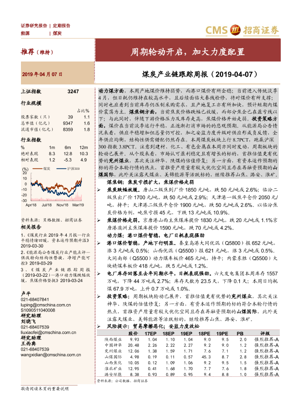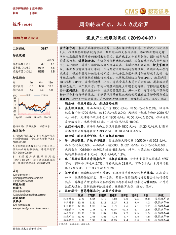【海通证券】【20190407】煤炭产业链跟踪周报:周期轮动开启,加大力度配置-20页