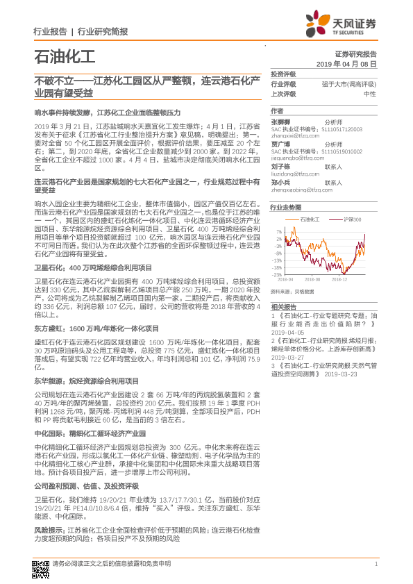 【天风证券】【20190408】20190408-天风证券-石油化工行业研究简报:不破不立——江苏化工园区从严整顿,连云港石化产业园有望受益-11页