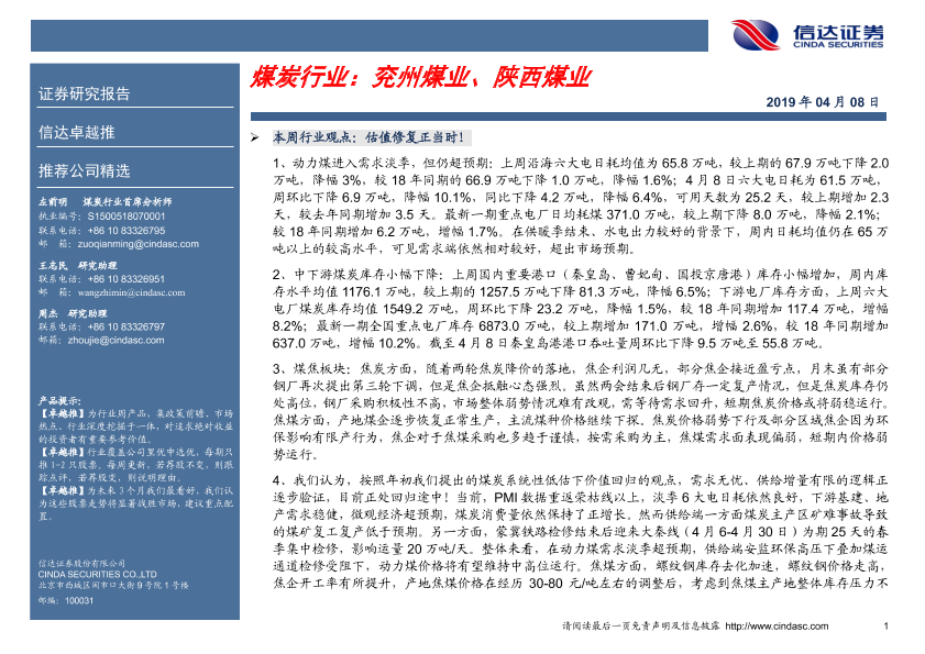 【信达证券】【20190408】煤炭行业:兖州煤业、陕西煤业-8页