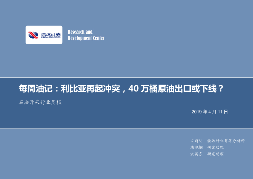 【信达证券】【20190411】20190411-信达证券-石油开采行业周报:每周油记:利比亚再起冲突,40万桶原油出口或下线?-12页
