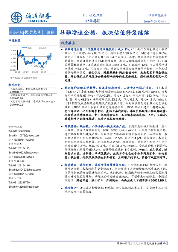 【海通证券】【20190414】20190414-海通证券-煤炭行业周报:社融增速企稳,板块估值修复继续-2页