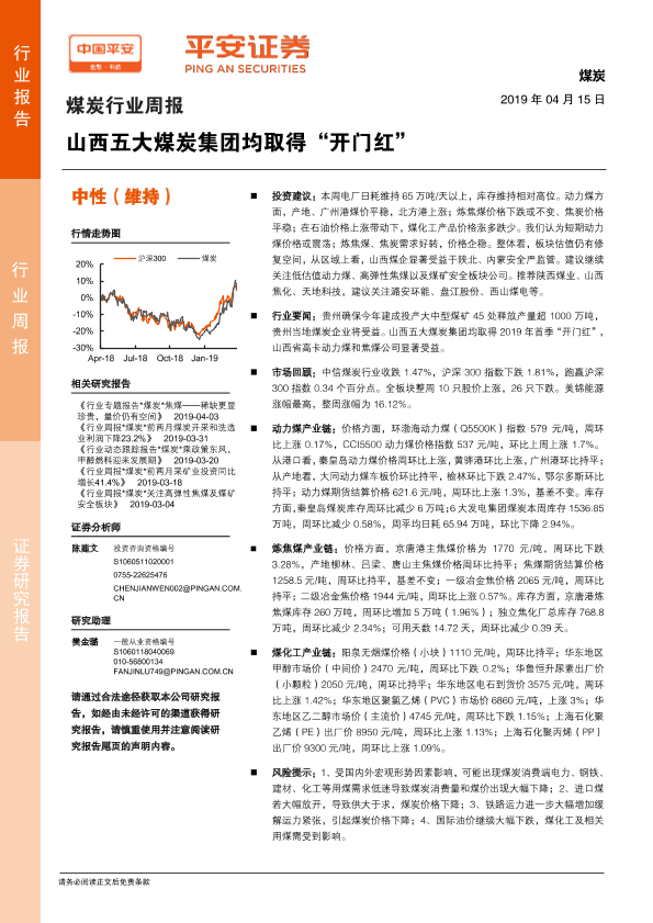 【平安证券】【20190415】20190415-平安证券-煤炭行业周报:山西五大煤炭集团均取得“开门红”-5页