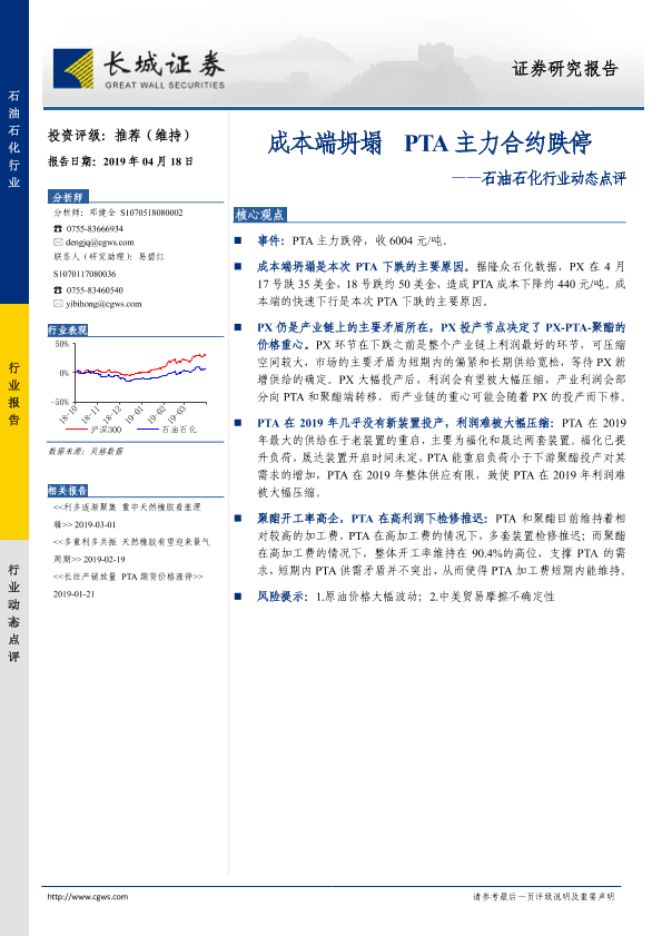 【长城证券】【20190418】石油石化行业动态点评:成本端坍塌 PTA主力合约跌停-2页