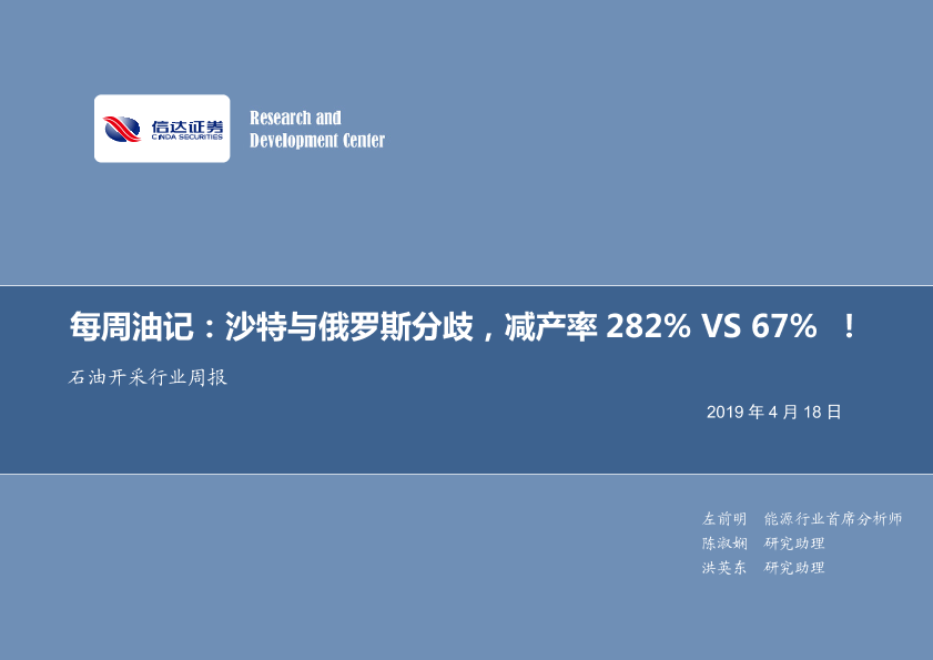 【信达证券】【20190418】20190418-信达证券-石油开采行业周报:每周油记:沙特与俄罗斯分歧,减产率282%VS67%!-11页