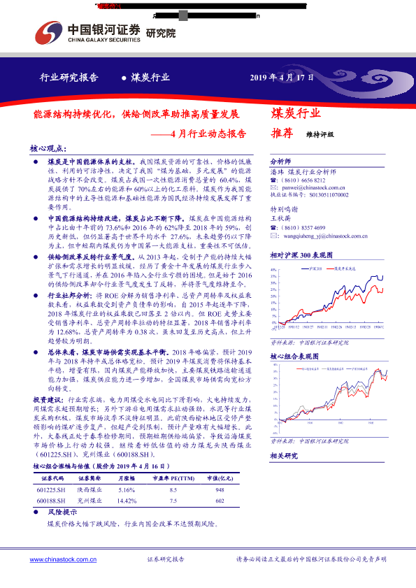 【银河证券】【20190417】20190417-中国银河-煤炭行业4月行业动态报告:能源结构持续优化,供给侧改革助推高质量发展-26页