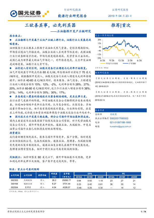 【国元证券】【20190423】工欲善其事,必先利其器——石油勘探开发产业链研究-74页