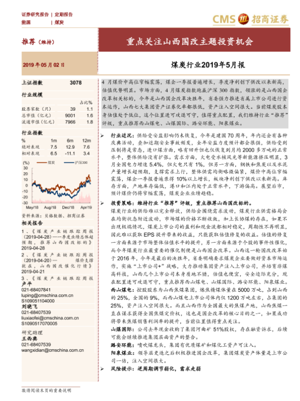 【海通证券】【20190502】煤炭行业2019年5月报:重点关注山西国改主题投资机会-21页