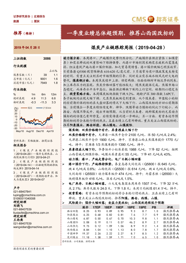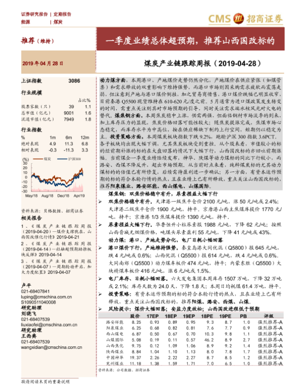 【海通证券】【20190428】煤炭产业链跟踪周报:一季度业绩总体超预期,推荐山西国改标的-20页