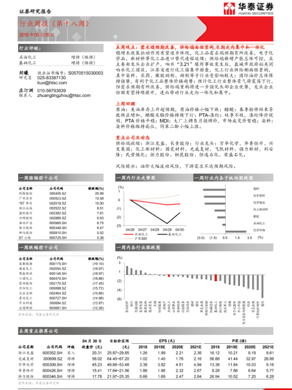 【华泰证券】【20190505】20190505-华泰证券-石油化工行业周报(第十八周)-14页