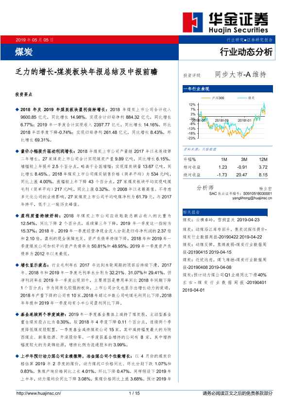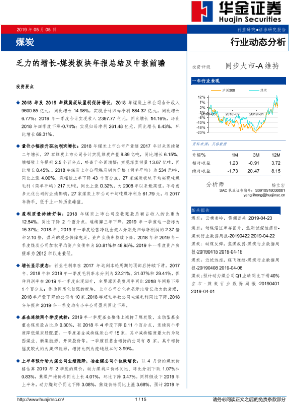 【华金证券】【20190505】煤炭行业动态分析:煤炭板块年报总结及中报前瞻-乏力的增长-15页