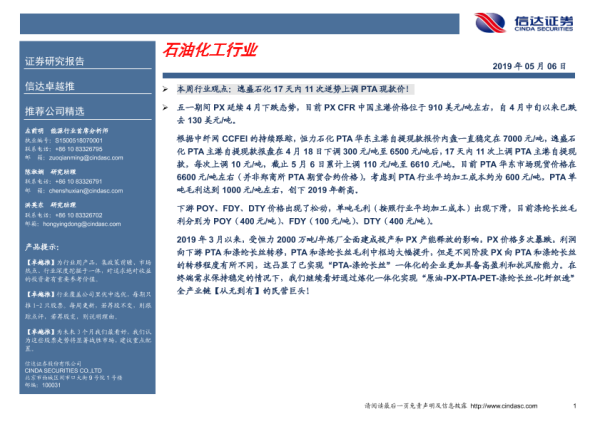 【信达证券】【20190506】20190506-信达证券-卓越推:石油化工行业-6页