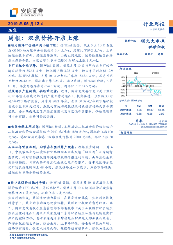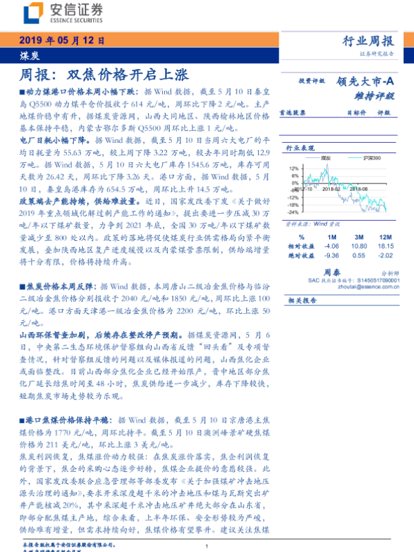 【安信证券】【20190512】20190512-安信证券-煤炭周报:双焦价格开启上涨-24页