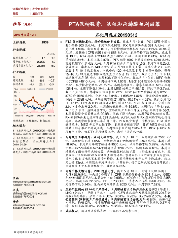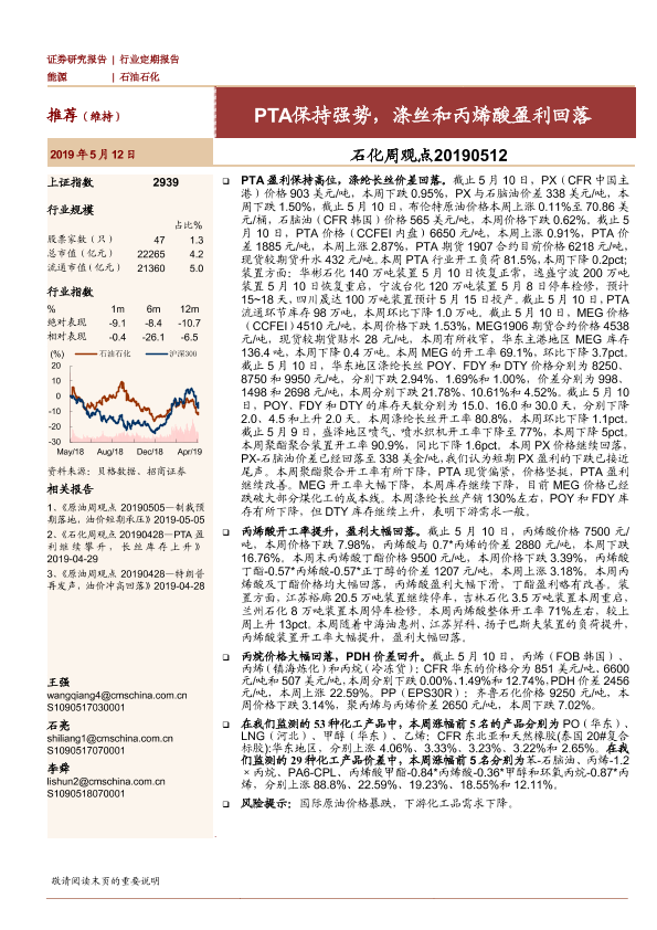 【海通证券】【20190512】石化周观点:PTA保持强势,涤丝和丙烯酸盈利回落-17页