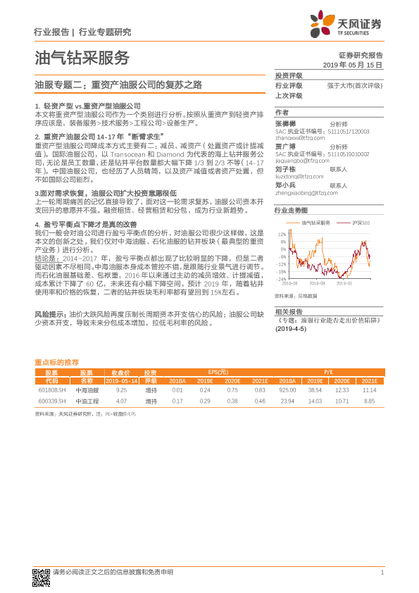 【天风证券】【20190515】油气钻采服务:油服专题二:重资产油服公司的复苏之路-8页