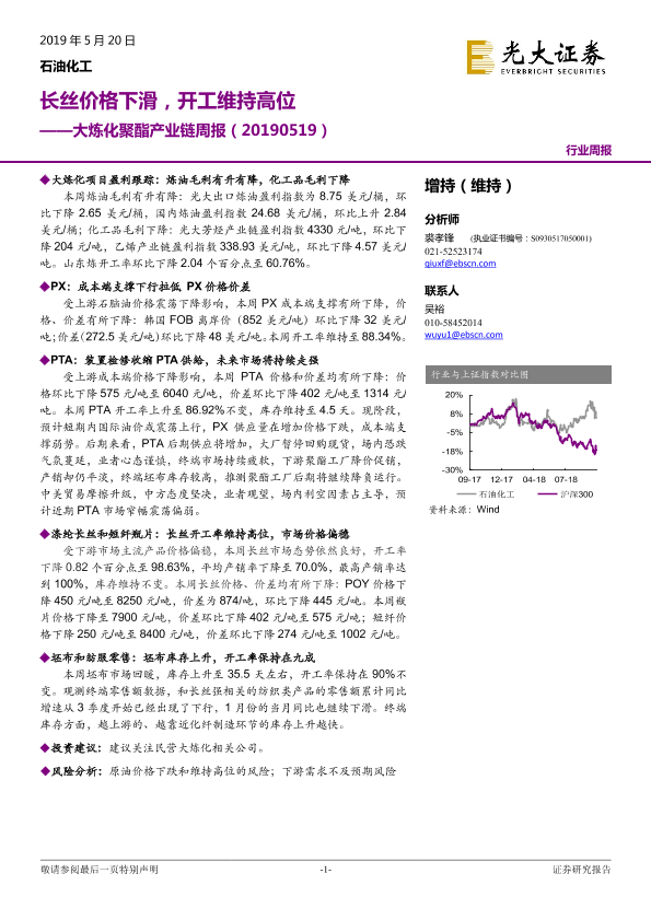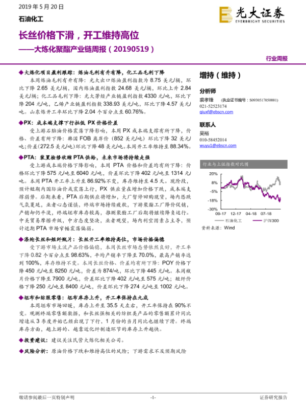 【光大证券】【20190520】20190520-光大证券-大炼化聚酯产业链周报:长丝价格下滑,开工维持高位-12页