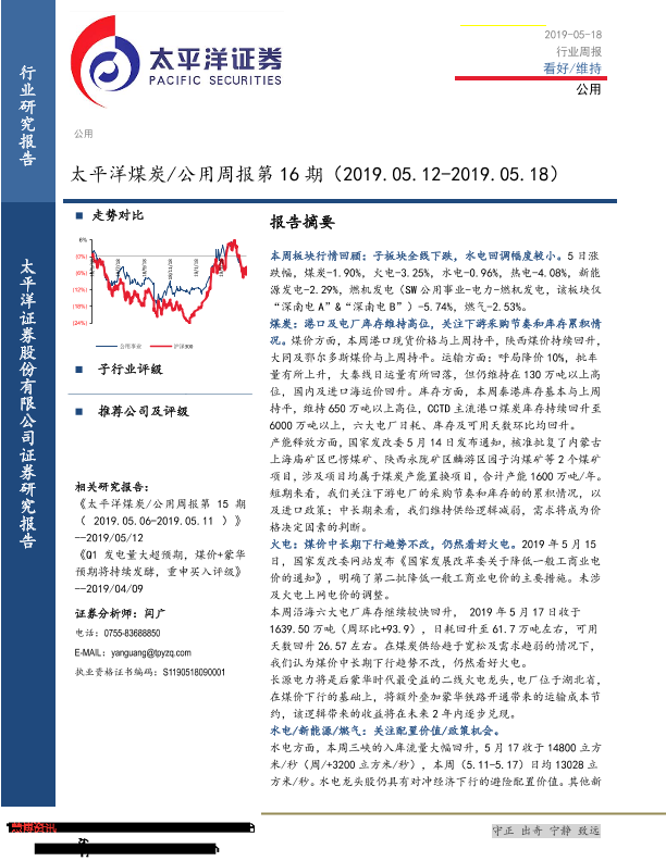 【太平洋证券】【20190518】太平洋煤炭/公用周报第16期(2019.05.12-2019.05.18)-38页