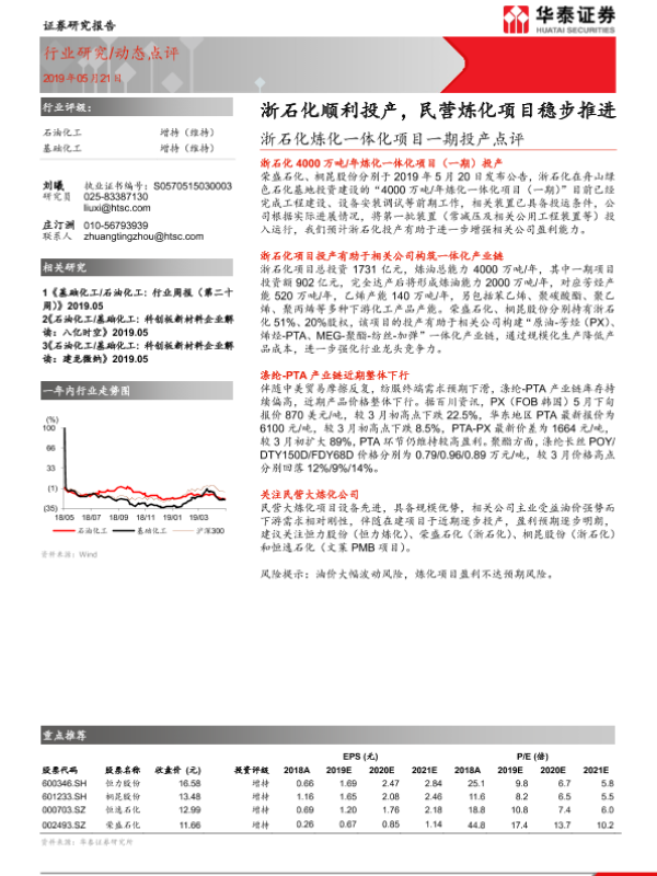 【华泰证券】【20190521】浙石化炼化一体化项目一期投产点评:浙石化顺利投产,民营炼化项目稳步推进-2页