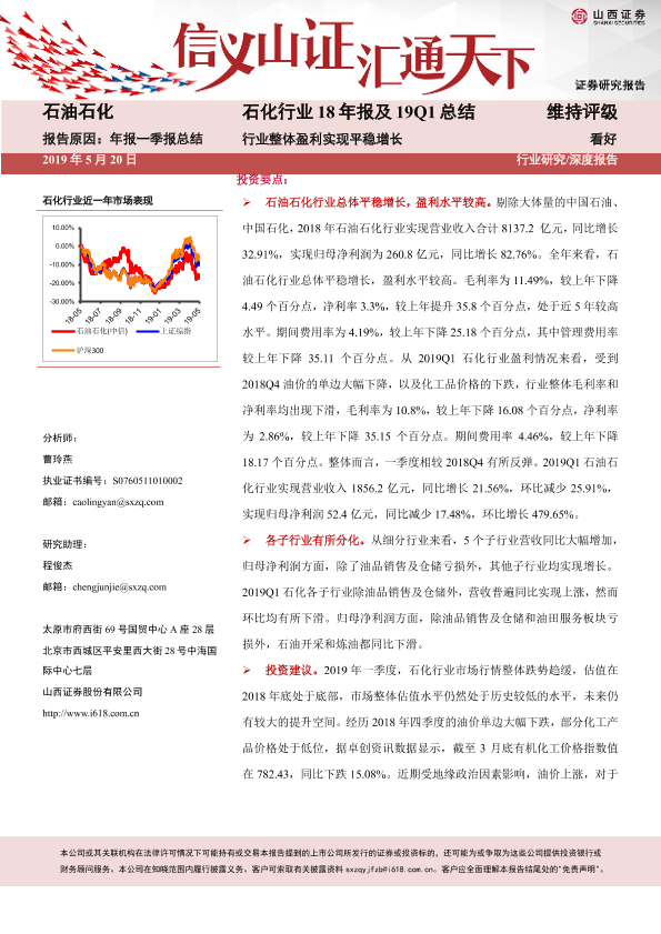 【山西证券】【20190520】石化行业18年报及19Q1总结:行业整体盈利实现平稳增长-29页