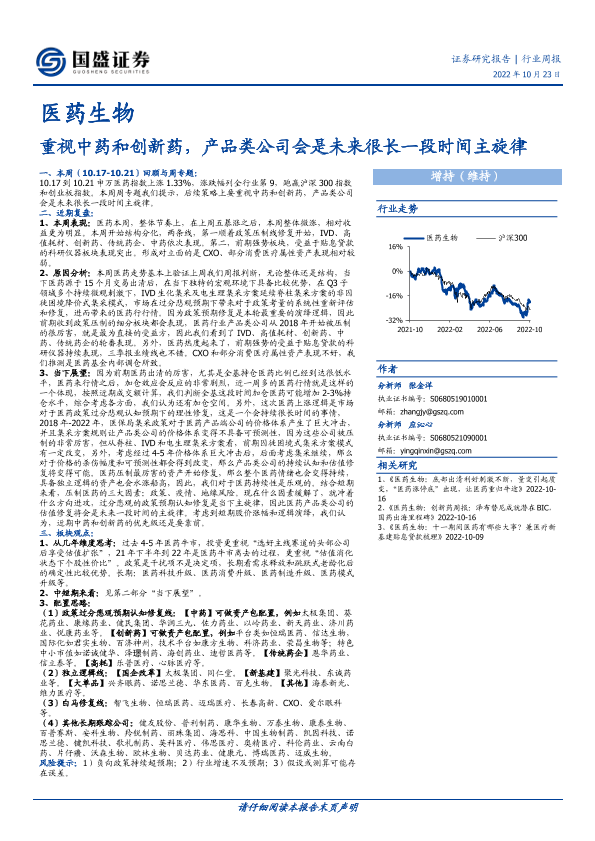 【国盛证券】【20221023】医药生物行业周报:重视中药和创新药,产品类公司会是未来很长一段时间主旋律-26页