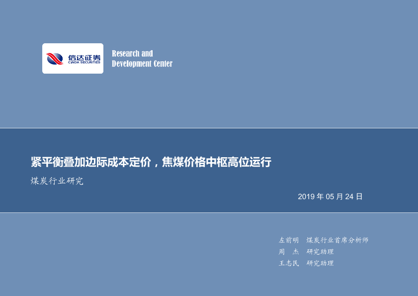 【信达证券】【20190524】煤炭行业研究:紧平衡叠加边际成本定价,焦煤价格中枢高位运行-32页