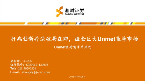 【湘财证券】【20221026】医疗行业Unmet医疗需求系列之一:肝病创新疗法破局在即,掘金巨大Unmet蓝海市场-44页