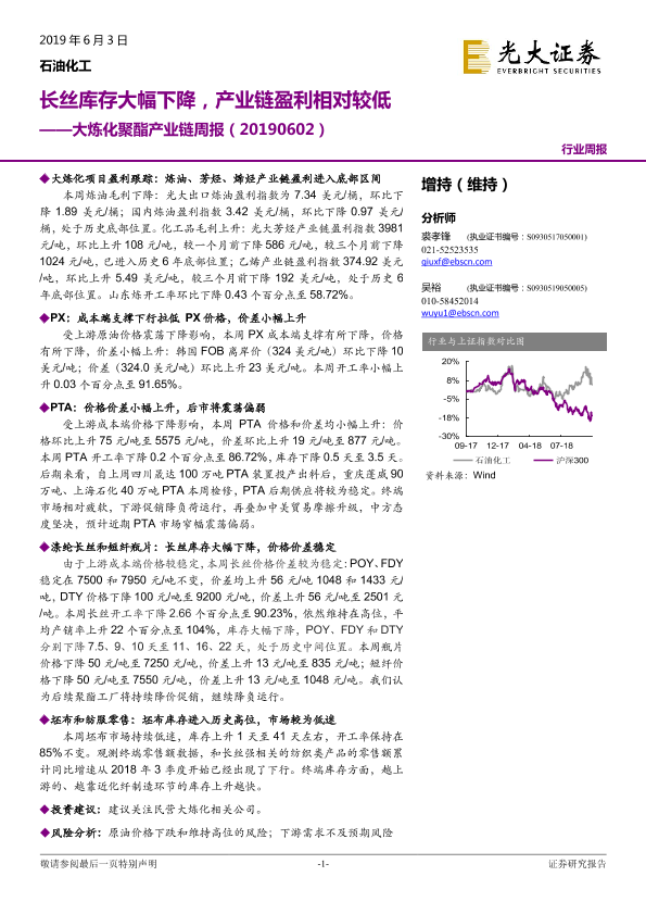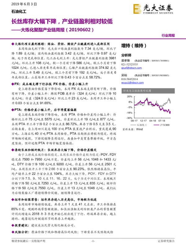 【光大证券】【20190603】大炼化聚酯产业链周报:长丝库存大幅下降,产业链盈利相对较低-12页