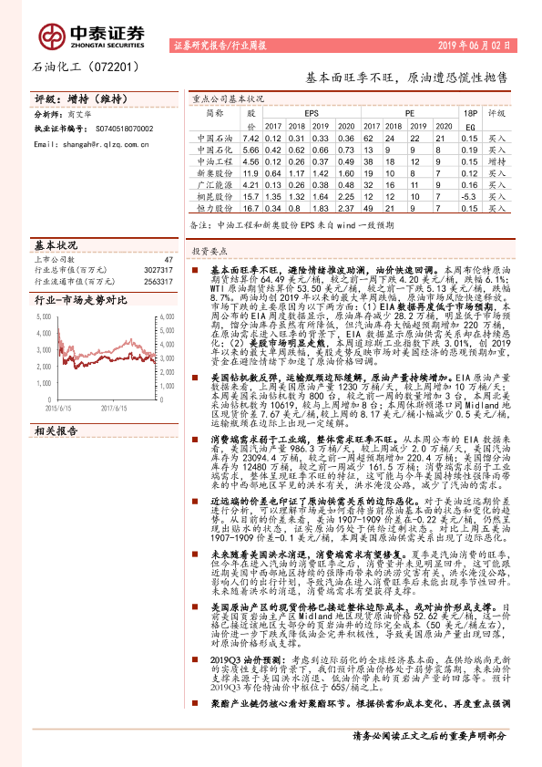 【中泰证券】【20190602】20190602-中泰证券-石油化工行业周报:基本面旺季不旺,原油遭恐慌性抛售-18页